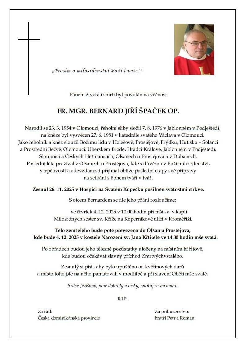 Zemřel P. Bernard Špaček OP